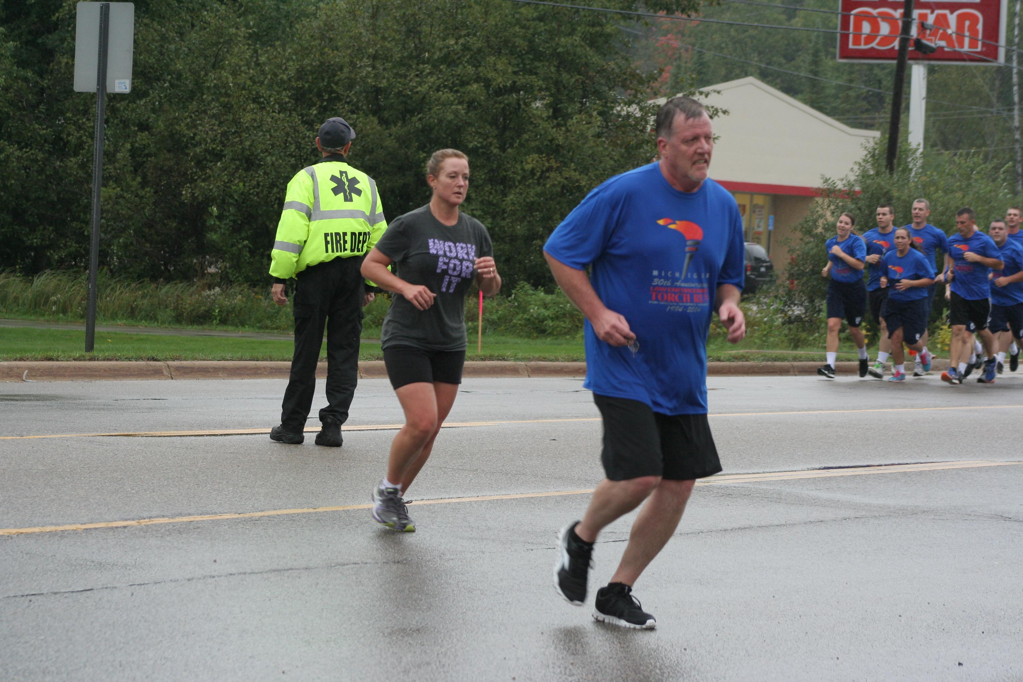 Thank you to all the participants, volunteers and local law enforcement members that participated in our Annual Law Enforcement Torch Run for Special Olympics that took place on SEPTEMBER 14, 2016.    We changed the run route up a bit this year and started at the Gerrish Township Municipal Center and ended at the South Higgins Lake State Park boat launch area where refreshments and hot dogs were served.  Transportation was provided from the South State Park back to the Gerrish Township Municipal Center parking lot.  We had 64 participants including the Kirtland Community College Regional Police Academy Cadets and a team from the Roscommon County Department of Health and Human Services.  Our community run is one in a series of more than 2-dozen community runs that were scheduled this September around the state during Law Enforcement Torch Run Week!