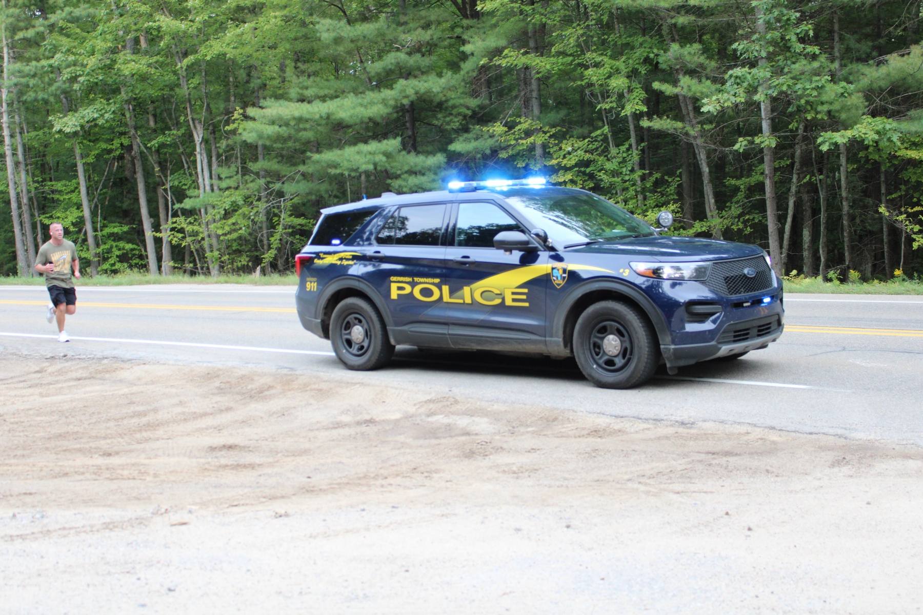 This is a 5K run/walk/bicycle event that starts here at the Gerrish Twp. PD and ends at the South Higgins Lake State Park pavilion/boat basin area.